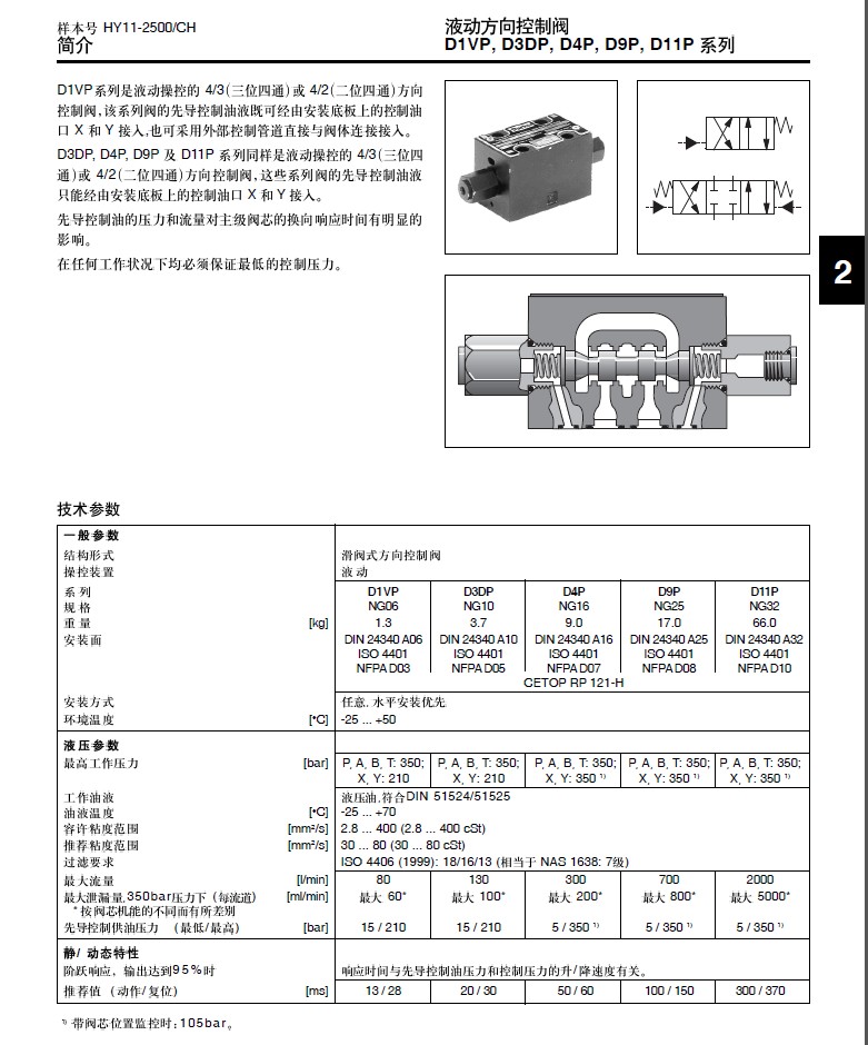 Parker D1VP, D3DP, D4P, D9P, D11P系列液动方向控制阀
