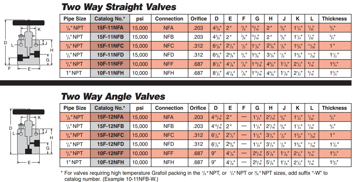 Female NPT/10,000 and 15,000 psi