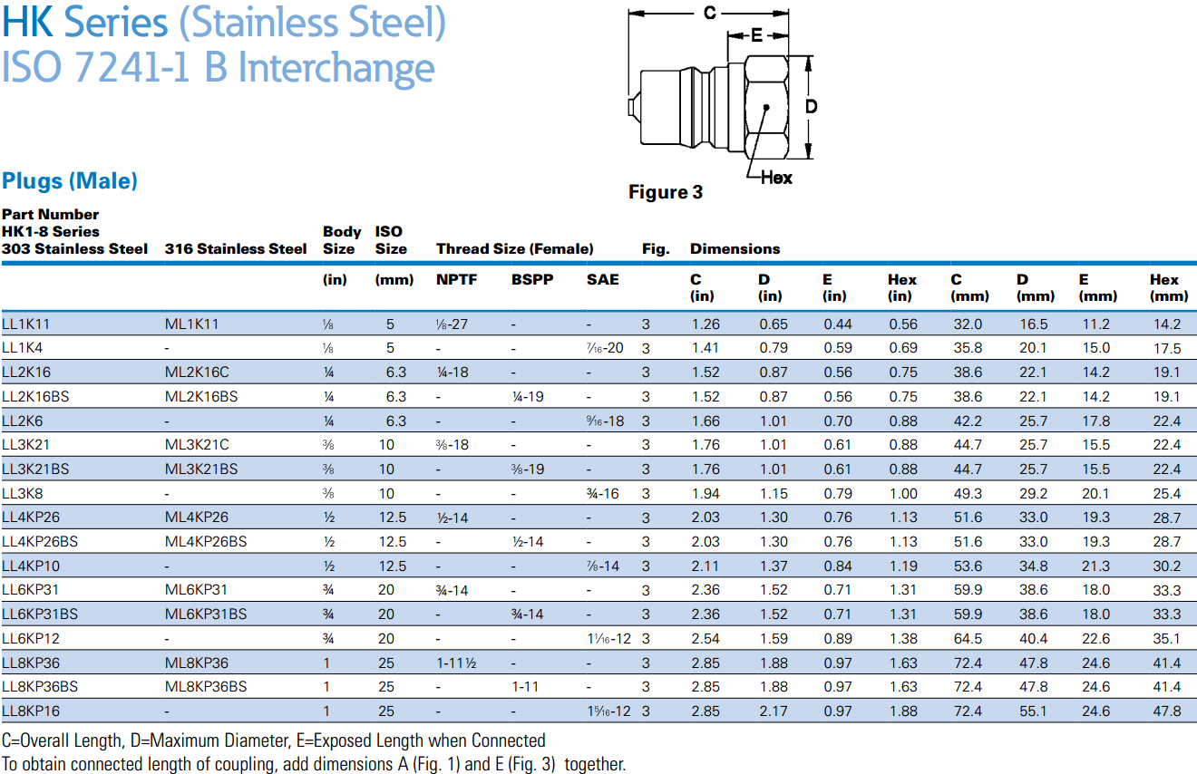HK Series Series (Stainless Steel) ISO 7241-1 B Interchange